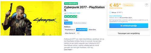 An early listing on the Dutch website Coolshop suggests that a physical edition of Cyberpunk is on the way for the PlayStation 5 and Xbox Series X/S.