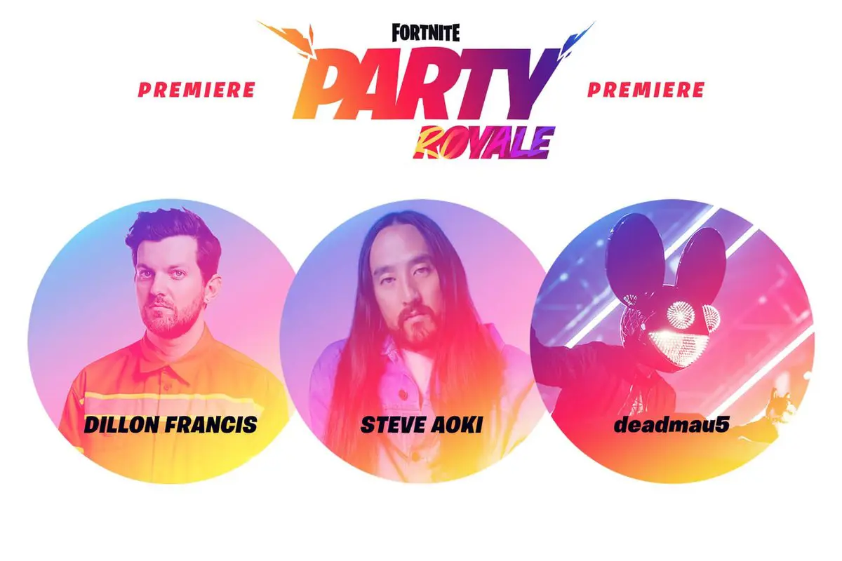 The biggest example of game publishers fully embracing the idea of games as both fun and social spaces is Fortnite's May 8th Party Royale Event. This was a live in-game concert, featuring Steve Aoki, Dillon Francis, and deadmau5. Players received Neon Wings Back Bling for just showing up to the game from Friday the 8th to Monday the 11th, in celebration of this event. On the island where the event was held, an obstacle court and boat races have been set up for players that want to stick around after the concert has ended. Additionally, an encore performance was held on May 9, which started at 11:00 AM PST, which encouraged even more players to log in if they happened to miss the May 8 concert.
