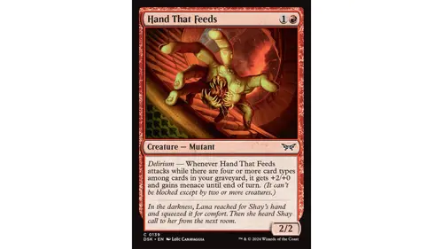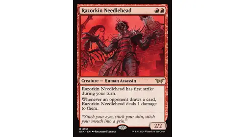 “Stitch your eyes, stitch your skin, stitch your mouth into a grin” is as creepy a flavour text as you’re likely to find in Magic, and it looks like it’ll be popular for aggro decks. Lucky us, we get to see it more often…