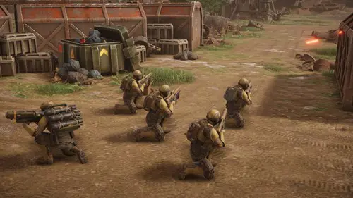 Look a little closer, though, and there's more to consider. Units can be suppressed in stages, potentially laying on the floor in a blind panic, unable to respond, while your all-seeing command ship can drop orbital strikes, Helldivers style, on targets. There's also no hit percentage like you'd find in X-COM, but there is damage fall-off.