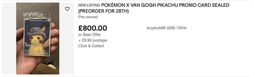 Despite this, the card is currently listed for between £150 and £800 on Ebay.