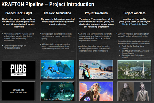 Later in the report, Krafton predicted a rough 2024 or 2025 release for Project BlackBudget, which will also come around the same time as their Project GoldRush action-adventure sandbox mode and Project Windless, another unannounced Krafton game based on the Korean mythology novel "The Bird That Drinks Tears" from Lee Yeongdo.
