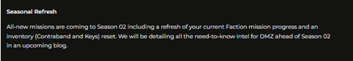 In the recent Call of Duty blog post, Infinity Ward confirmed, "All-new missions are coming to Season 02 including a refresh of your current Faction mission progress and an inventory (Contraband and Keys) reset."