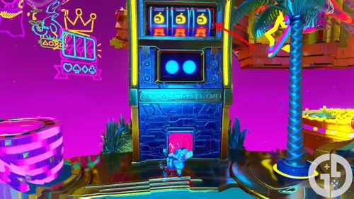 When working your way through Slo-Mo Casino in Serpent Starway you'll eventually reach a point where four giant slot machines are sat in one area. It's quite close to the start, just after you pass through some red curtains.