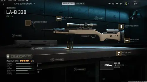 For the best LA-B 300 loadout, you're going to want to lean into the speed and mobility of this sniper, which definitely suits the quickscoping community. Decreasing the ADS time is where you need to focus when building this kit, and seeing as though you're playing multiplayer with small maps, the best place to start is the 16" XLR Executor 80 barrel. This will come at the cost of some range, so if you're savvy to Ground War, the 18" barrel might be better serving.