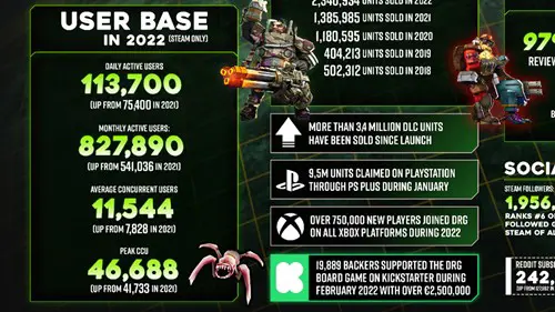 Deep Rock Galactic had a massive year in 2022. Here are some of the interesting details, including the player count.