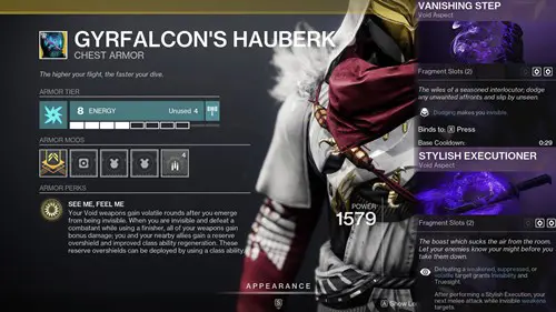 Fans of the shooter have been clamouring for this exotic chest piece since the recent update that made it extremely powerful. Gyrfalcon's Hauberk turns Void Hunters into the ultimate stealth assassins.