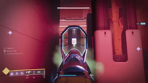 In the room after the trap room, you will encounter the red Operator augment for the first time. Again, just like Deep Stone Crypt, Operator allows you to shoot glowing red panels that usually open doors. As such the next few rooms revolve mostly around using the Operator and Scanner augments to shoot red panels or hack yellow terminals.