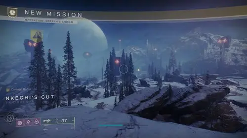 As with the previous weekly missions, Seraph's Shield begins at Nkechi's Cut in the Twilight Gap. You need to make your way across the snowfield, keeping out of the line of sight of the security towers. This time, you are headed for the main entrance, to the right of the entrances used in previous missions. There are many more Hive here this time to get in your way, so be prepared for them.