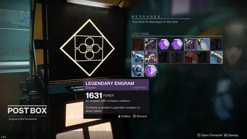 While you are at it, keep opening Prime Engrams as soon as you get them, as they offer +1 gear which doesn't scale with your current power level. Say you obtained Prime Engrams when your character power level was 1616. Opening the Prime Engram will give you gear with power level 1617.