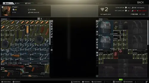 In terms of actually purchasing items from the Traders, you will have two different methods and three different currencies. Going over the methods first, you can buy items either through a direct cash purchase or through a barter for other lootable items. You can trade seven knives for a UMP with Peacekeeper for example, giving you an alternate means of getting certain items that you might not be able to purchase otherwise.