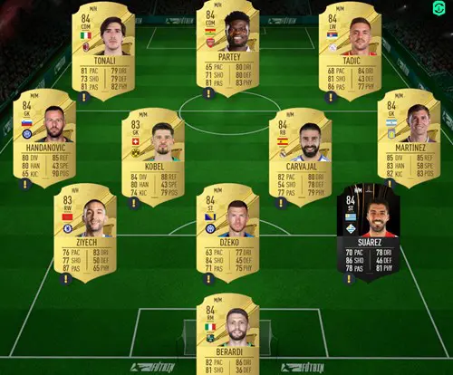 While the solution that we provide below might be the cheapest option if you're buying completely from scratch, nine times out of ten you're going to be cheaper by using players that are already in your club if you can. This is especially the case for an SBC this expensive, as any way you can save money will really be appreciated.