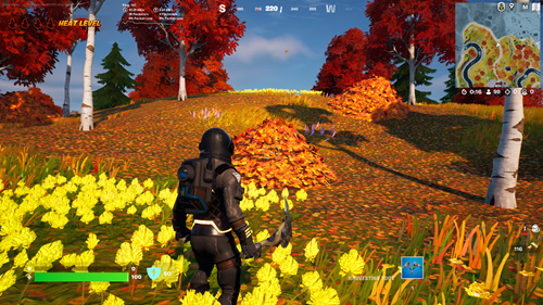 Leaf Piles are also fairly easy to find around the map in Fortnite Chapter 4. Simply open up your map and look for an area with autumnal colours (orange and yellow).