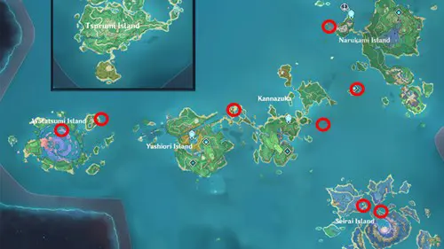 The fishing spots in Inazuma are: