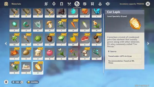 Genshin Impact Cor Lapis Crafting Recipes