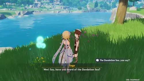 The NPC Sage will be nearby, to tell you about the legend of the Dandelion Sea, of which there is a collectible book that outlines the legend, available from Flora the flower merchant in Mondstadt. Dandelion Flowers will also populate the cliffs of the surrounding areas, so look out for blue and yellow flowers in the area.