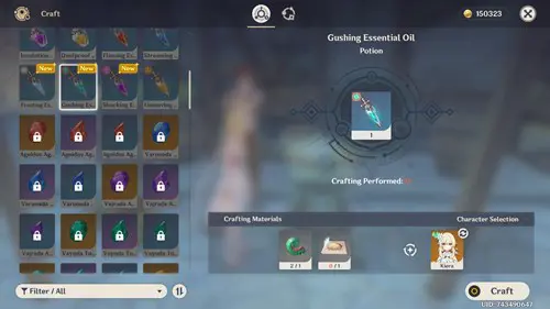Gushing Essential Oil – A potion that will increase the damage output of Anemo abilities. Applies to all party members with Anemo affinity.