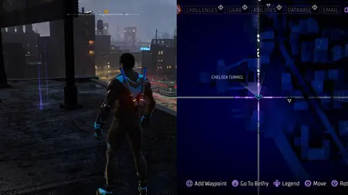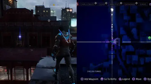 4. Next head to the Chelsea Tunnel. Of the two buildings at the opening of the tunnel, go to the roof of the southern one. At the southern end of the roof there is a billboard, and below the billboard is a Batarang.