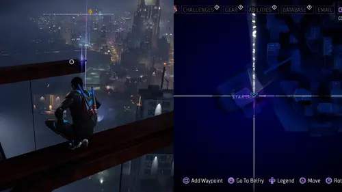 11. From Gotham City Hall, go to the building across the street to the south. On the roof is an antenna, and there you will find a Batarang.
