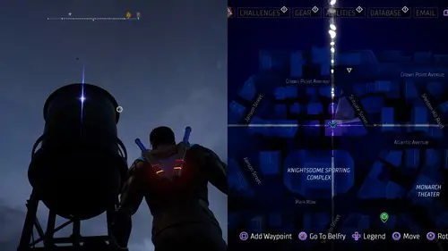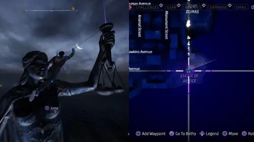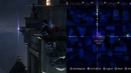 7. At the Cobblepot Steel building, climb to the top and you will find a Batarang on the gargoyle on the southwest corner.