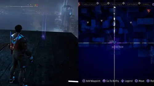 12. Finally, head to Waynetech in the southeast. Climb the building, and you will find the Batarang on the second-highest roof of the building.