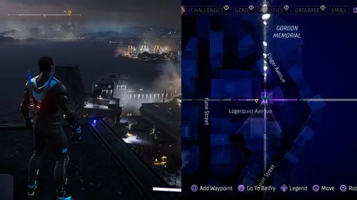 1. Gotham Heights: In the northwest of the region is Gotham City University. Go to the northwest building, opposite the courtyard area. The Batarang is on a low roof on the east side of the building.