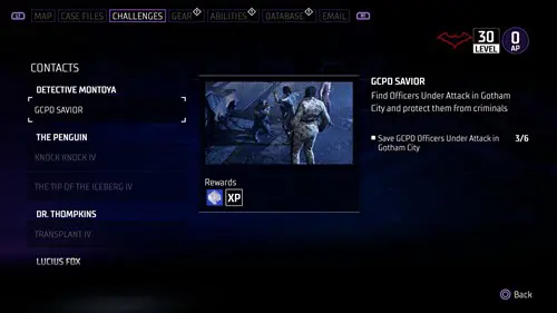 Outside of just being a part of the story, the contacts you meet throughout Gotham Knights will provide you with challenges to complete. These challenges tend to be quite general, such as stopping a certain amount of crimes or defeating criminals in an area. Some contacts will want you to solve particular crimes, such as Dr Thompkins, who tasks you with stopping organ trafficking crimes, or Detective Montoya asking the Knights to bring down corrupt cops.