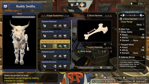 After every mission, make sure you’re visiting the smithy for any potential upgrades or new weapons you can forge. As you progress through Monster Hunter Rise and take down new beasties, the range of forgeable items grows, meaning you should periodically check-in.