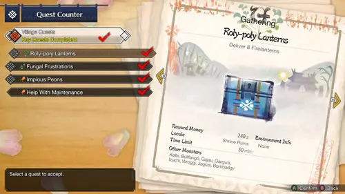 Instead, what you’re going to want to do is focus on following the Village Quests, which are the solo missions in Monster Hunter Rise. The first few introduce you to key mechanics of the game, including gathering resources and combat. Unlike the multiplayer quests, they do a better job of easing you into the experience.