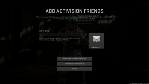 - Copy and paste a friend's Activision ID into the empty request box and hit 'Send Request'