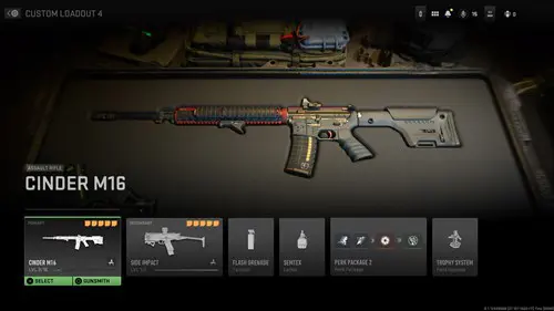 MW2 gives players access to the X13 Side Arm blueprint through its exclusive rewards, and the automatic pistol is quite a necessity with the MW2 M16 loadout, given that you can quickly lose count of how many bursts you've unleashed and you might need a get-out-of-jail-free card in close proximity. Your semtex and flash grenades will also be quite crucial, as you'll often do grievous harm with one burst, but might need to finish off a foe who has cowered behind some cover.