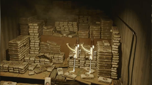 This location is an objective for all players, but instead of running off with your sniper, you can find both the golden AK-74 and Desert Eagle propped against the cartel cash piles.