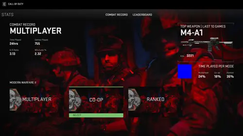 When writing this article, the leaked Modern Warfare 2 feature, Combat Record, which showcased stats like time played per mode, top weapon in the last ten games, K/D ratio, win and loss ratio, time played, total games played, and other things, is not present in Modern Warfare 2.