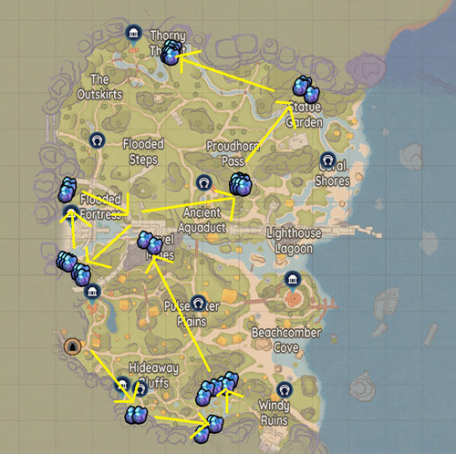 To make things easier for you, we have marked the best farming route for Palium Ore in the map screenshot below: