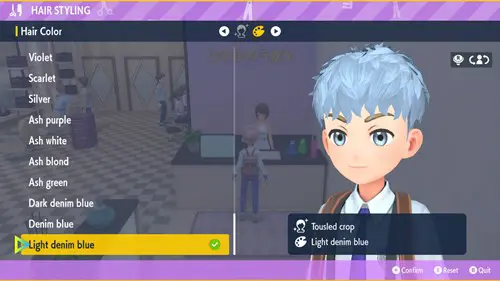 There is a long list of available colours to go with the long list of hairstyles. You have all the typical, natural colours that you would expect for your hair, along with plenty of interesting and unusual shades. As well as some stark shades, there are some subtle tones you often see folks get as dyed options. Here is the full list of Pokemon Scarlet and Violet hair colours;