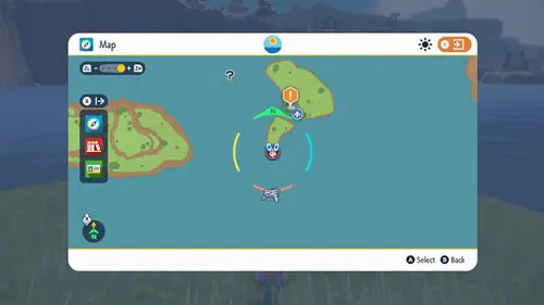Later, return to the original spot where you found the Tatsugiri, the southern point of the eastern island. Interact with it to battle and catch it.