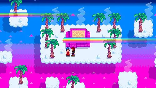 Various villagers take part including Robin, who dresses in a dress and the Abigail who shows off a full suit of armour. Clint also takes part, once everyone leaves, he returns as he isn’t confident enough to pull off his look. When he returns to the room and sees Emily and the player talking alone, he apologises for ‘interrupting’ insinuating there is something between the player and Emily and leaves again.