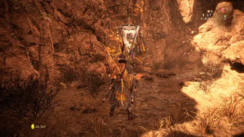 Follow the path until you come to a split. Take the right path and follow it up the cliff to reach this Marking Flag.