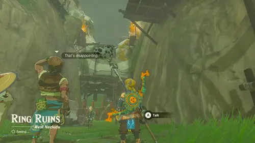 Head back to Kakariko Village and speak to Paya, the chief of Kakariko Village, and Tauro, who are next to the entrance to the Ring Ruins. Fill them in what you’ve discovered to unlock the 'Secret of the Ring Ruins' main mission.
