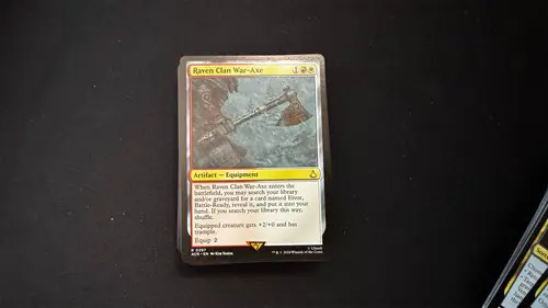 The Red and White deck has two copies of Raven Clan War-Axe, Headsplitter, and Hookblade for equipment, so there’s plenty of opportunity to get some on the board - particularly when paired with aggressive cards like Ezio, Brash Novice, which grows in power as it attacks.