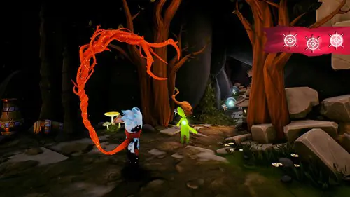 Your dragon-shaped scarf companion can transform herself into several different shapes which give Hyke different abilities that he can use to traverse the various worlds you explore. This includes morphing into a pair of wings to give Hyke a double jump, a lasso to swing between rings (more on this one later), or a glider allowing Hyke to cross large gaps. While this is an interesting mechanic and clever way to introduce the different abilities, the number of transformations is limited and each one could, and arguably should, have been used far more frequently throughout the game. As it stands, each one is needed much less often than you'd expect.